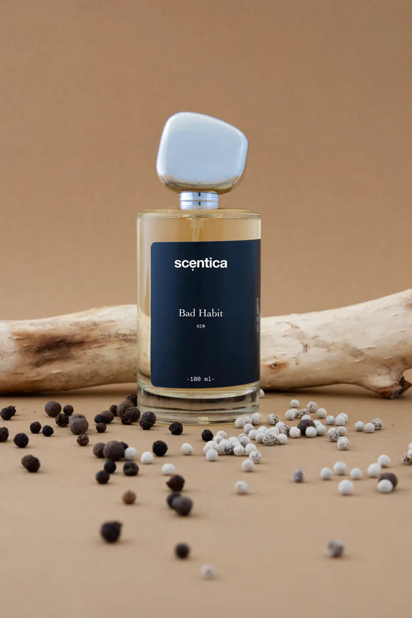 Bad Habit es un extrait de parfum especiado - amaderado inspirado en Bad Boy de Carolina Herrera. Esta fragancia encarna la dualidad del hombre contemporáneo: audaz y relajado, fuerte y sensible. Su apertura destaca con la combinación de pimienta blanca, pimienta negra y bergamota, creando una entrada fresca y especiada. El corazón revela notas de salvia y cedro, aportando una profundidad herbal y amaderada. Finalmente, el fondo de haba tonka, cacao y amberwood ofrece una estela cálida y envolvente, perfecta para quienes buscan una fragancia sofisticada y moderna.